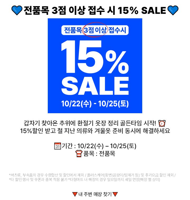 10월 전품목 3점이상 15% SALE!